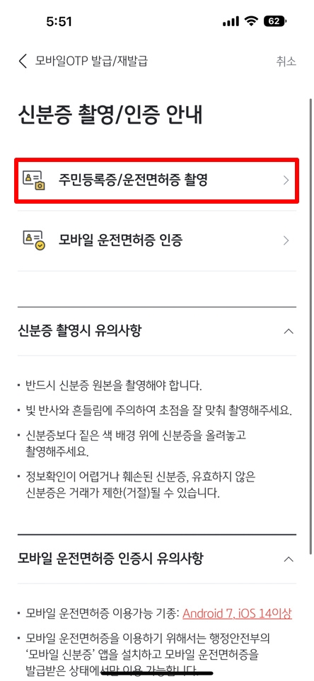 저는 운전면허증으로 신분증 촬영을 인증하였습니다. 안내에 따라 신분증 촬영을 하시고 이미지에 읽힌 숫자나 문자가 잘못 기재된 경우 직접 수정하여 진행하시면 됩니다.