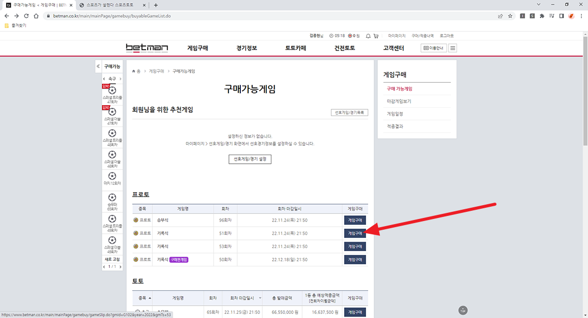 2022년 카타르 월드컵과 관련된 스포츠 토토 게임을 하고 싶다면 구매 가능 게임에서 프로토 기록식 51회차와 50회차만 보시면 됩니다. 저는 프로토 기록식 50회차 게임을 구매해 보겠습니다.