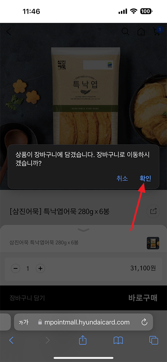 어묵도 구매하기 버튼 선택.