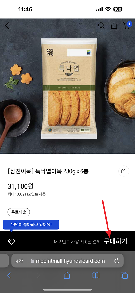 어묵도 구매하기 버튼 선택.
