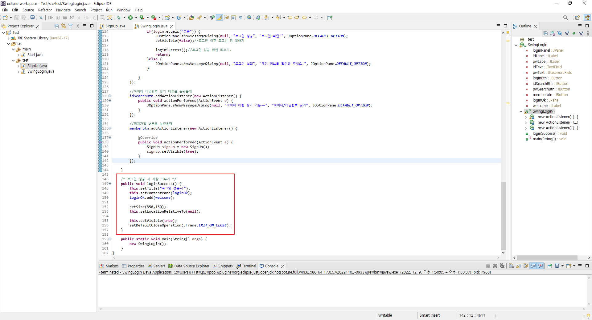 private JLabel welcome = new JLabel("로그인 성공~! 환영합니다. ");