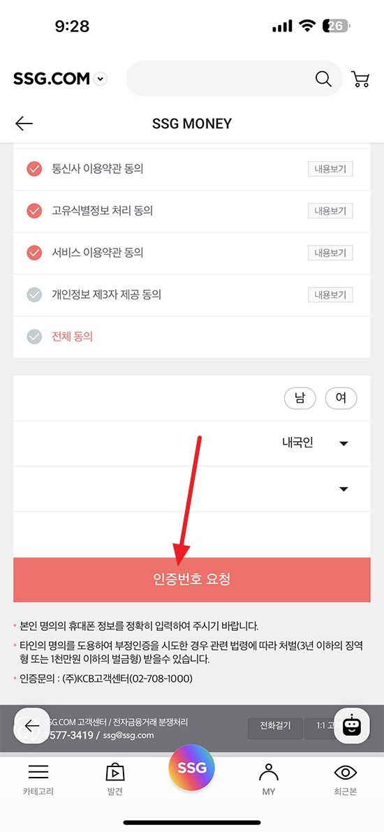 위 인증까지 진행하시면 쓱 페이 화폐를 은행 계좌로 이체받으실 수 있습니다.