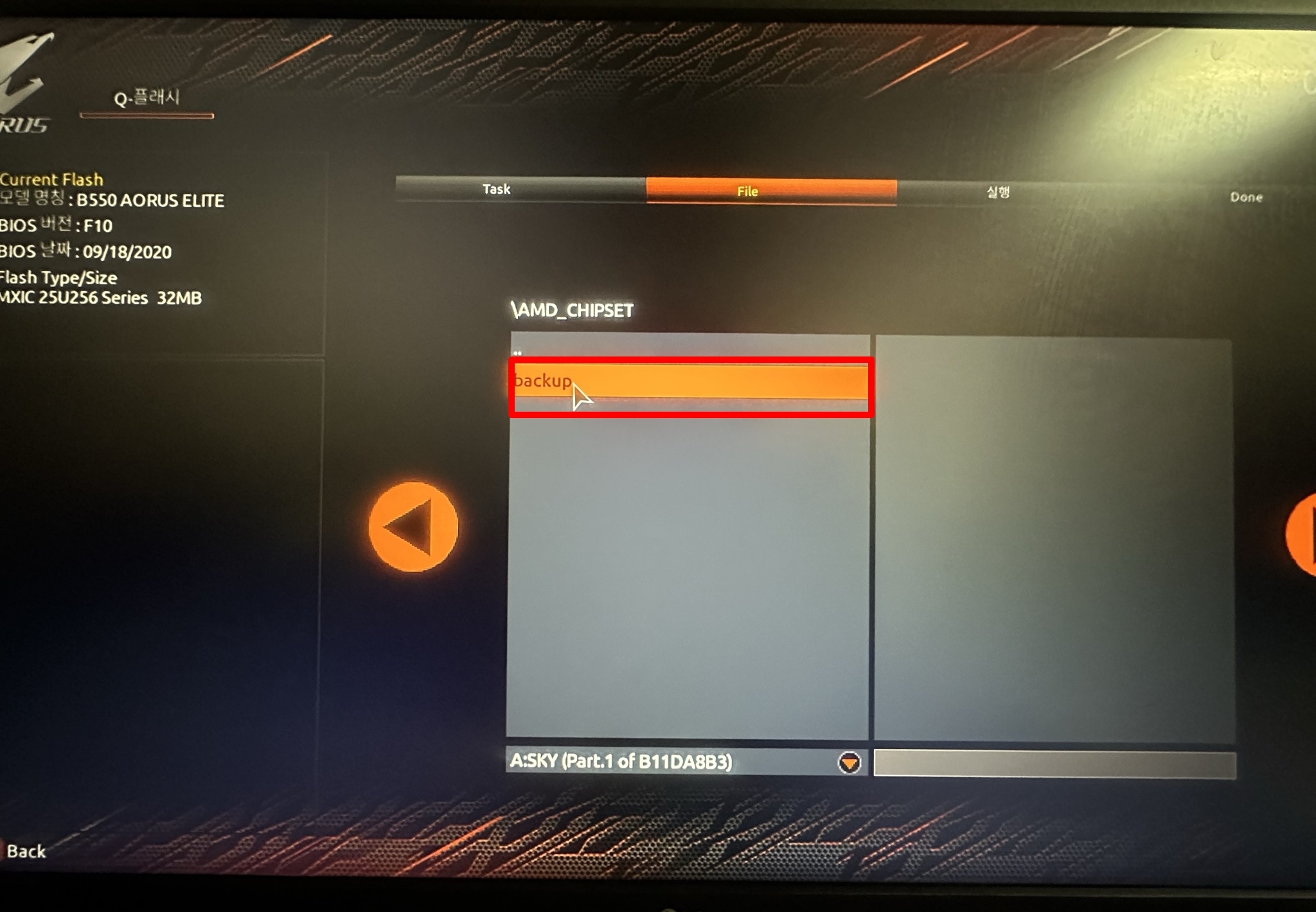 저는 처음에 메인보드 이름에 버전은 (REV) 같았는데 B550 AORUS ELITE가 아닌 B550M AORUS ELITE 메인보드 바이오스 파일로 진행해 아래 이미지와 같이 오류가 났었습니다.