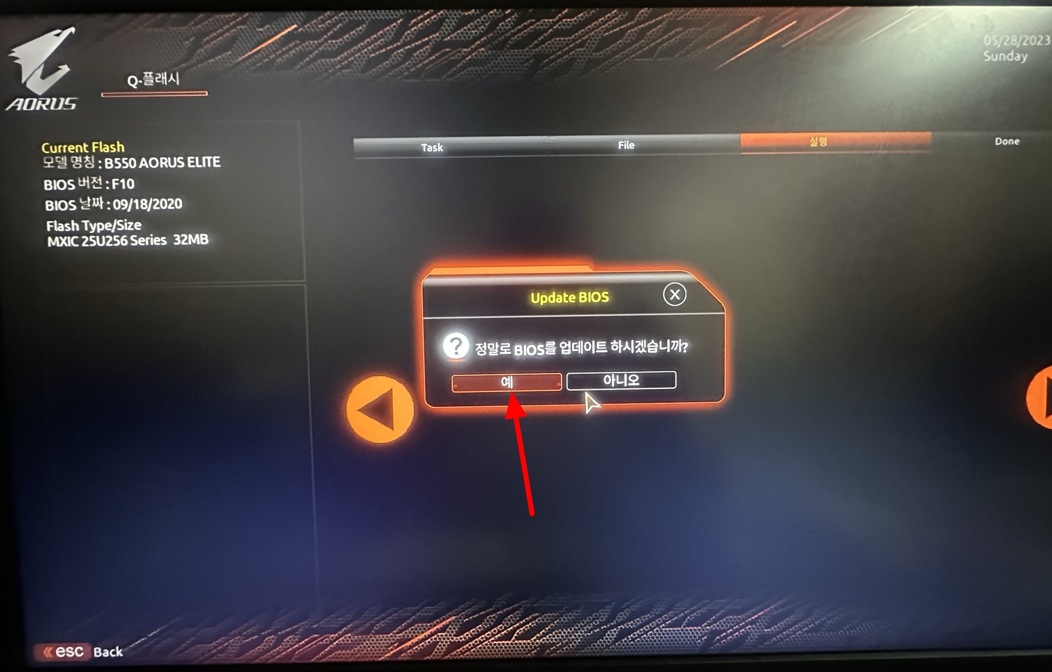 B550 AORUS ELITE 바이오스 업데이트 파일 선택