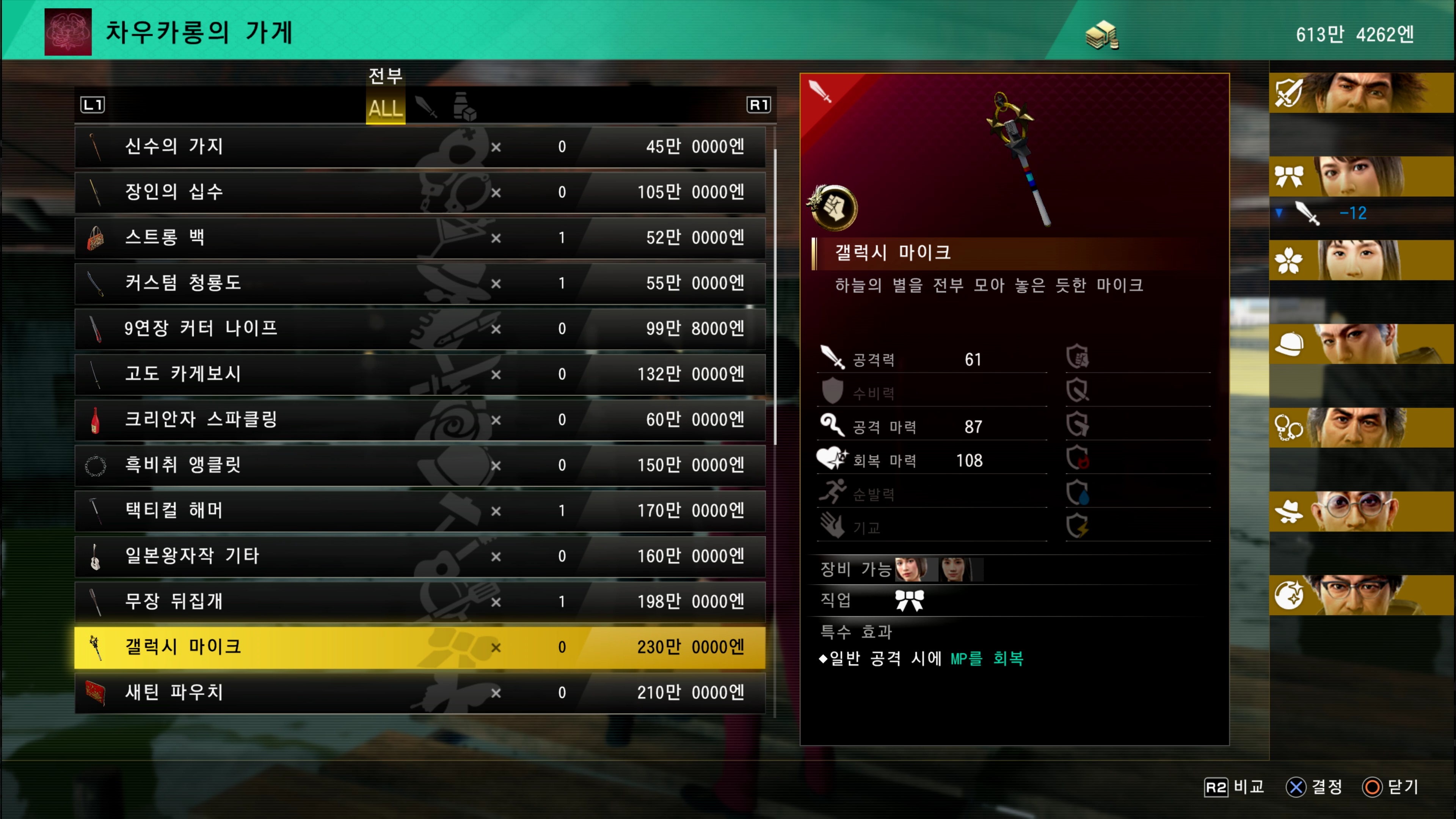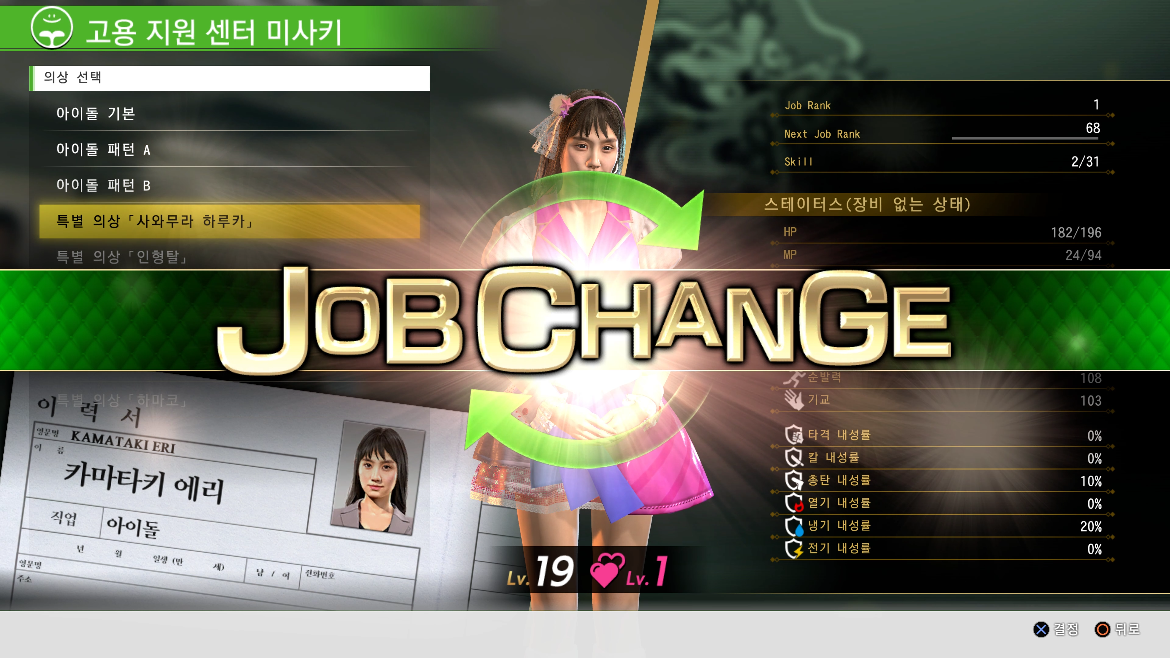용과같이 7은 잡체인지 시스템을 통해 직업을 변경할 수 있는데 현실 사회에 있는 직업을 게임에서 구현해 직업을 바꾸는 게 신선하고 재밌기도 하고 캐릭터를 키우는 즐거움도 있었습니다.