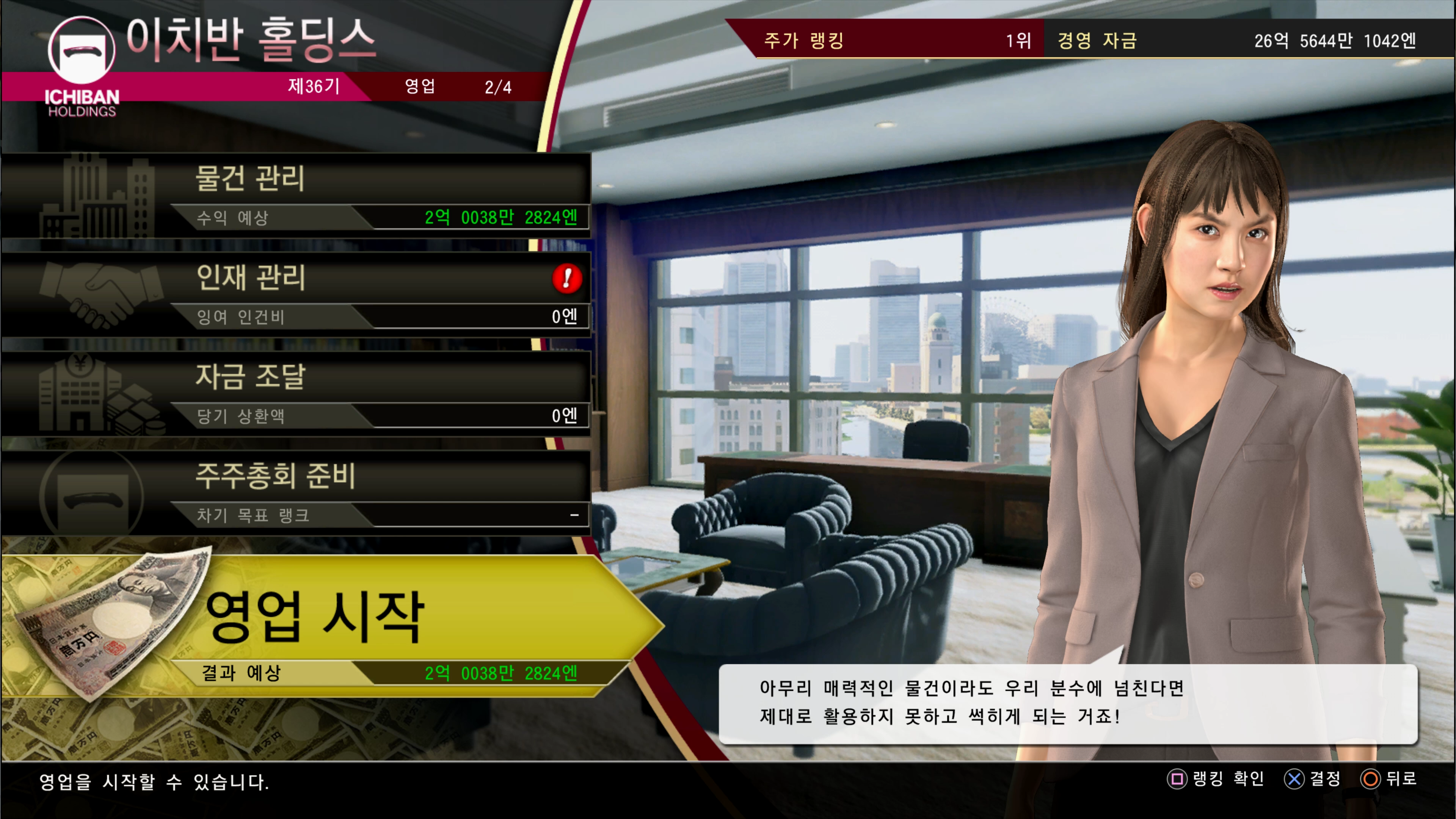 용과같이 게임을 좋아하는 이유 중 하나가 다양한 미니 게임들이 많고 또 재미있기 때문입니다. 회사 경영 미니 게임은 개인적으로 흥미롭고 재밌는 소재였지만 단순히 인력을 배치하고 자동으로 돌아가는 노가다성인 지속되어 초반엔 꽤 재밌게 즐겼지만, 후반엔 지루하기도 했습니다.