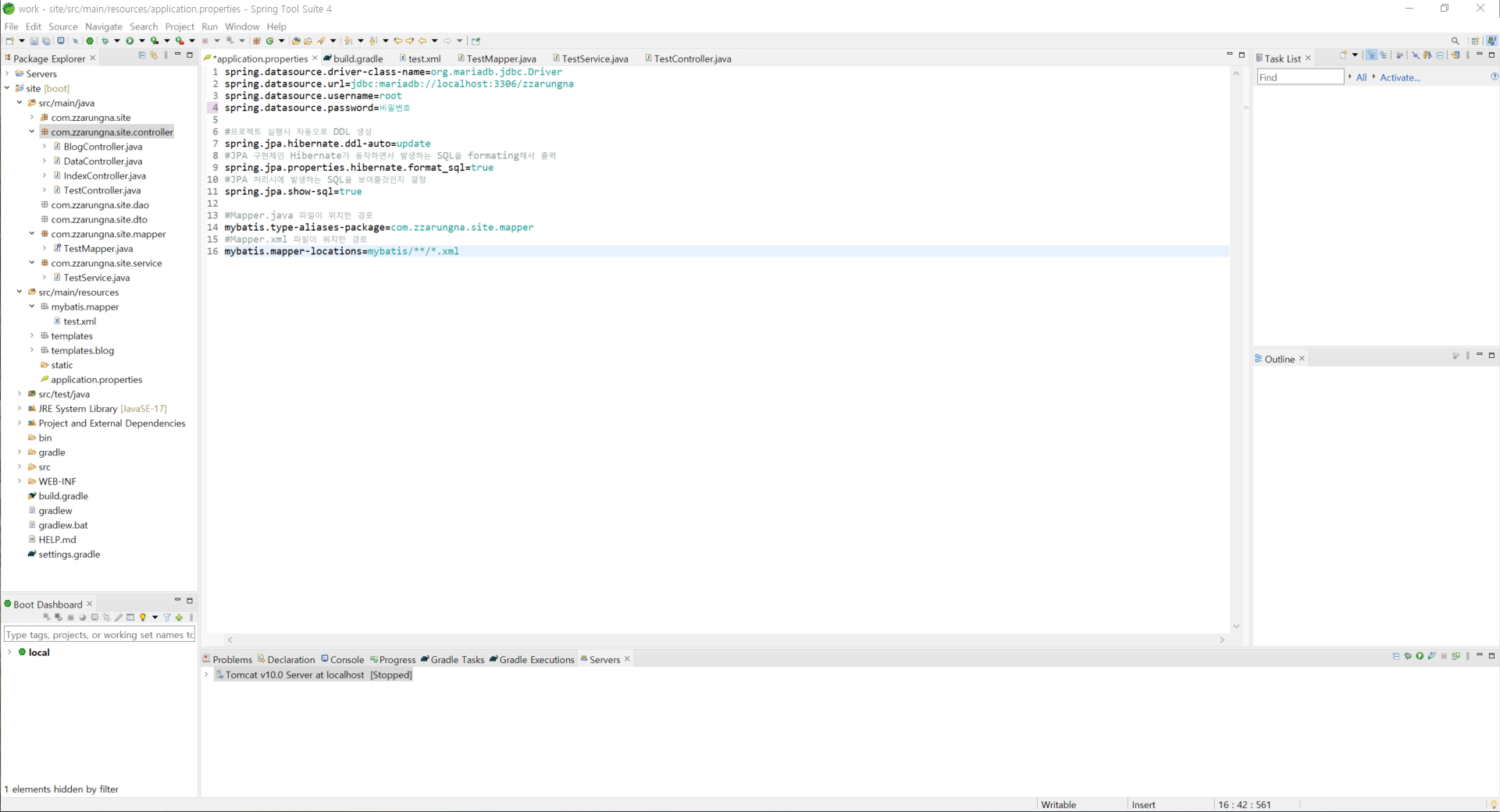 혹시 모르니 폴더 구조와 테스트했던 소스 파일을 첨부해 테스트에 참고 하시기를 바랍니다. 아래 이미지는 스프링부트 폴더 구조이니 참고 하세요.