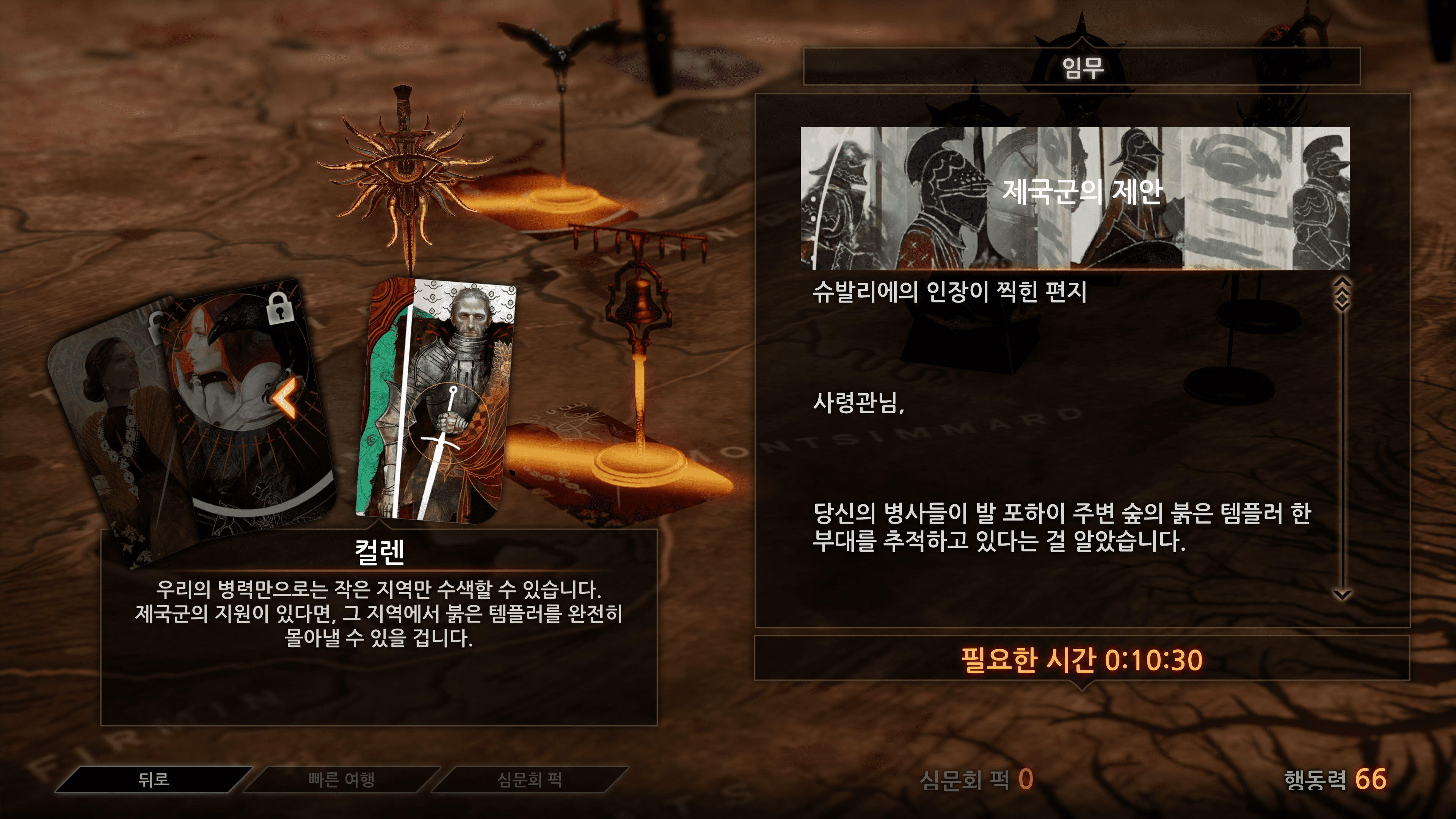 군사를 이용해 지역을 정벌하거나 첩보 활동 및 외교를 통해 지역을 정벌 후 새로운 지역에 거점을 마련하는 시스템은 다른 게임에서는 느껴보지 못했던 새로운 시스템이었지만 단순히 시간이 필요할 뿐 정벌하는데 특별한 재미를 느끼지는 못했습니다. 하지만 새로운 국가를 탄생시켜 국가를 운영한다는 느낌은 신선하고 좋았습니다.