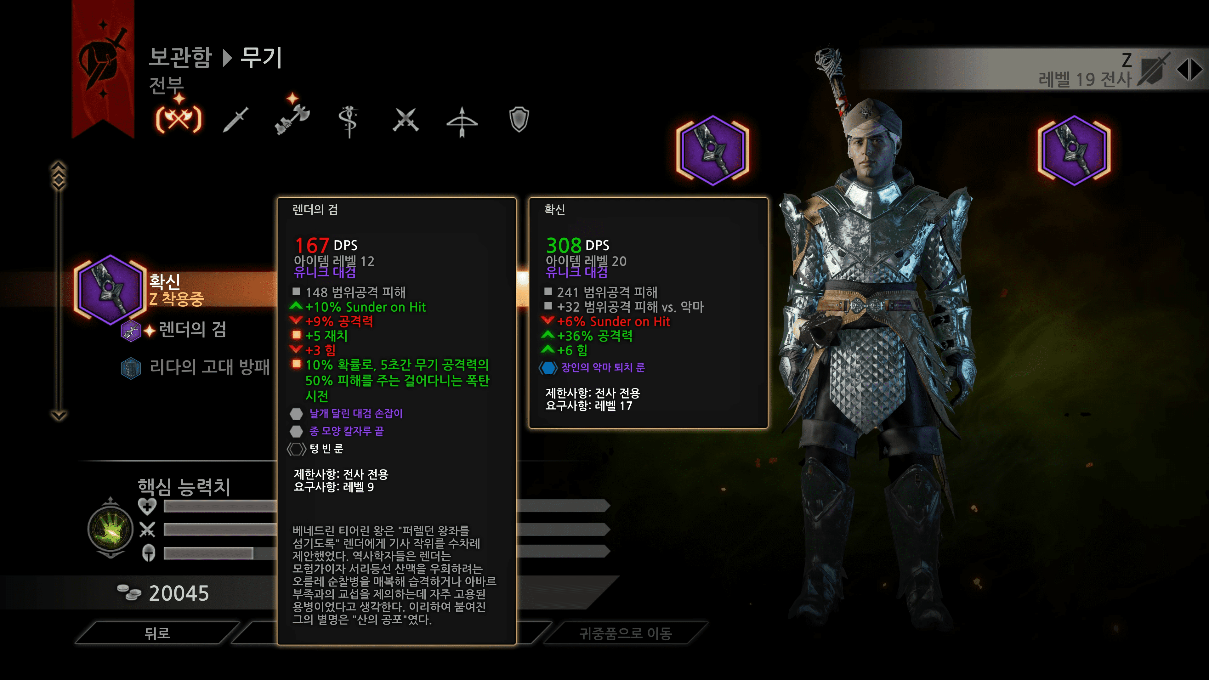 드래곤 에이지 인퀴지션 게임 초반에 고생을 해서 그런지 캐릭터가 성장하는 재미는 확실히 있었던 것 같습니다. 레벨업을 하고 유니크 장비를 획득하며 강해지는 느낌을 확실히 받았습니다.