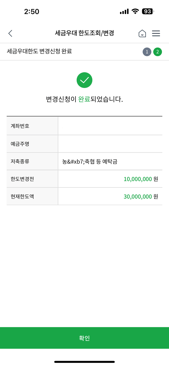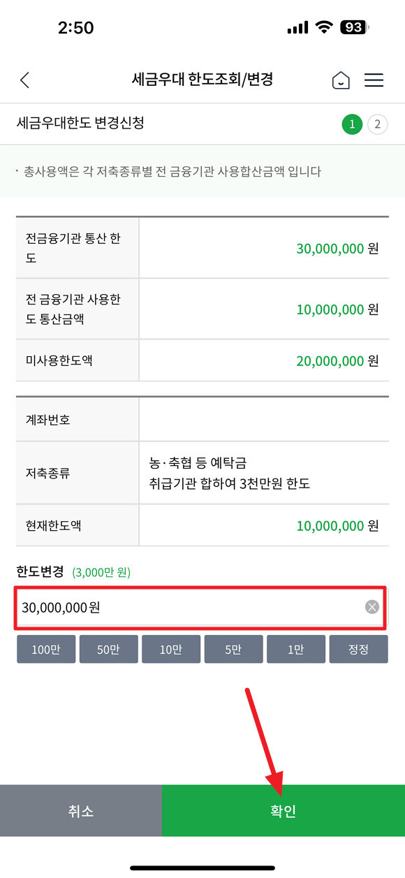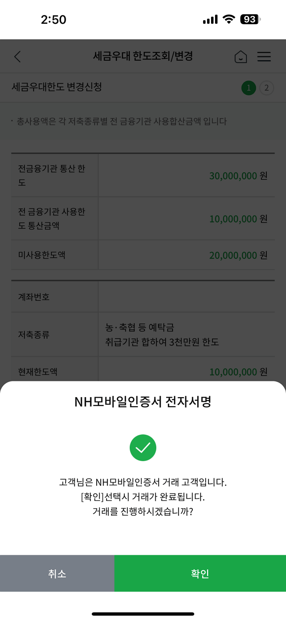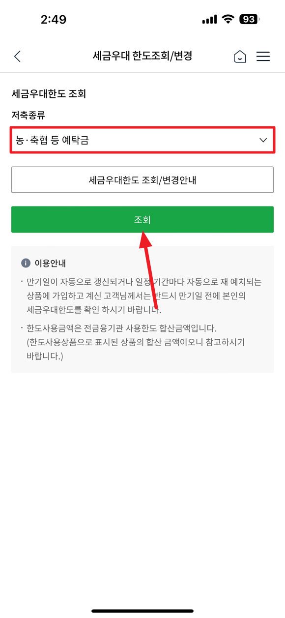 모바일 농축협 세금 우대 한도 변경 방법