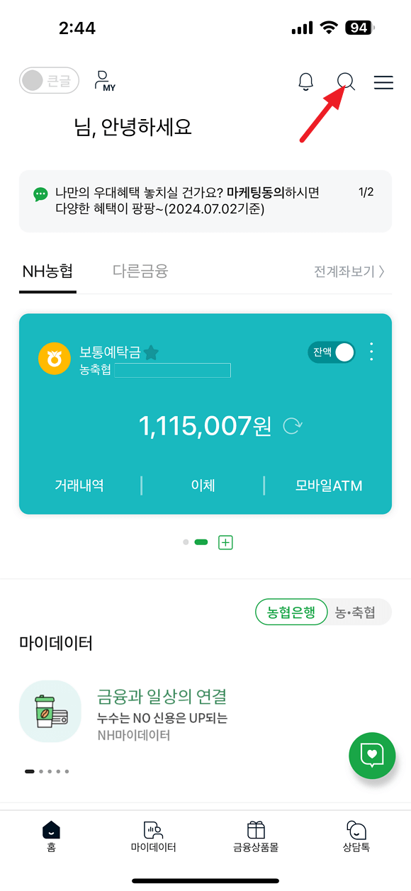 농축협에 자유 적립 적금 통장을 하나 사용 중인데 모바일 앱을 사용해 세금 우대 한도를 변경하는 방법에 대해 작성하면 좋을 것 같다는 생각이 들었습니다. 먼저 NH뱅킹 앱을 실행하시면 됩니다.