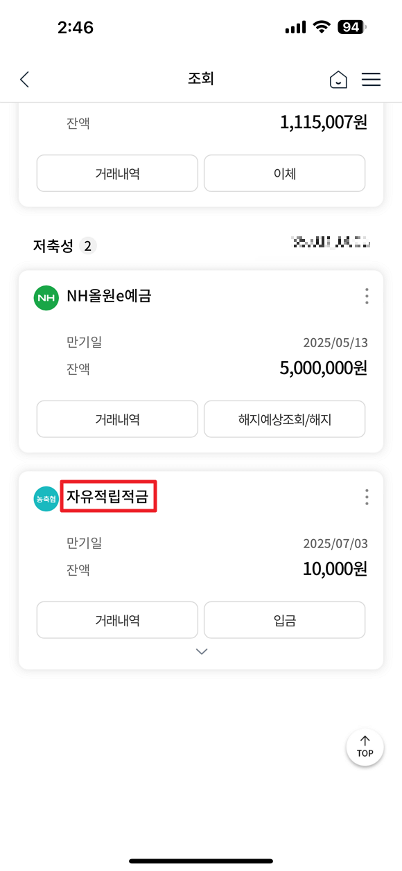 제가 사용한 농축협 적금 상품은 자유 적립 적금 상품으로 나와 있더군요.