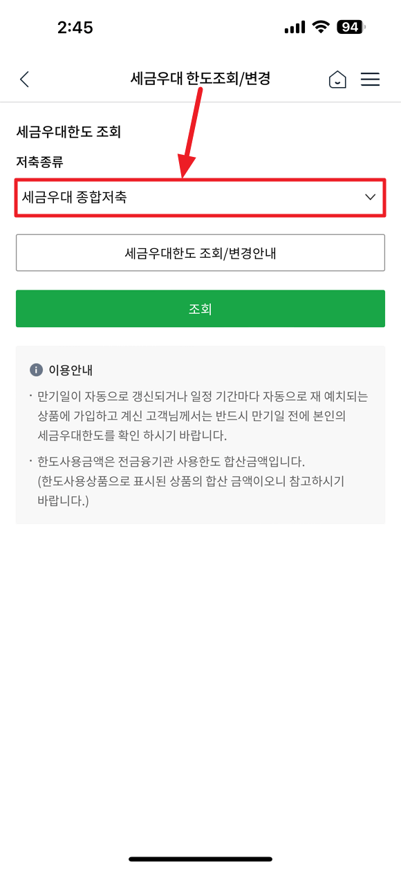 그리고 저축 종류를 선택하셔야 하는데 가입하신 저축 상품에 맞는 항목을 골라 주셔야 조회가 정상적으로 됩니다.