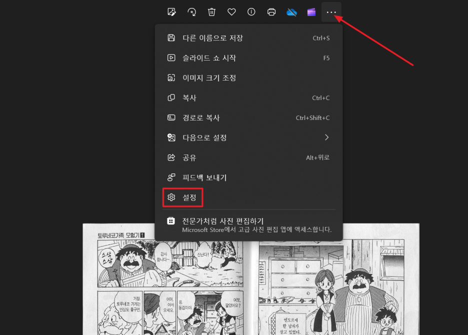 윈도우 사진 앱 확대 설정만 하면 만화 보기 좋아요