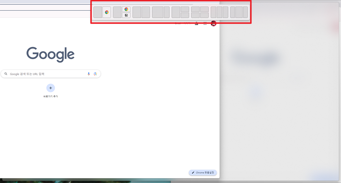 네 번째 장점은 화면 분할을 자동으로 나눠주는 기능입니다. 누군가는 쓸모 없는 기능이라고 얘기하기도 하지만 PC에서 작업하는 내용이 많은 저에겐 꽤 유용한 기능입니다. 해당 기능이 없었던 윈도우10 버전에서는 창 크기를 수동으로 반씩 나눠서 조절해야 해서 불편했었기에 반가운 기능 중 하나입니다. 사용 방법은 프로그램 창을 위쪽으로 드래그하면 창을 나눌 수 있는 형태를 선택해 여러 종류의 실행 중인 프로그램 화면을 자동으로 나눠 줍니다.