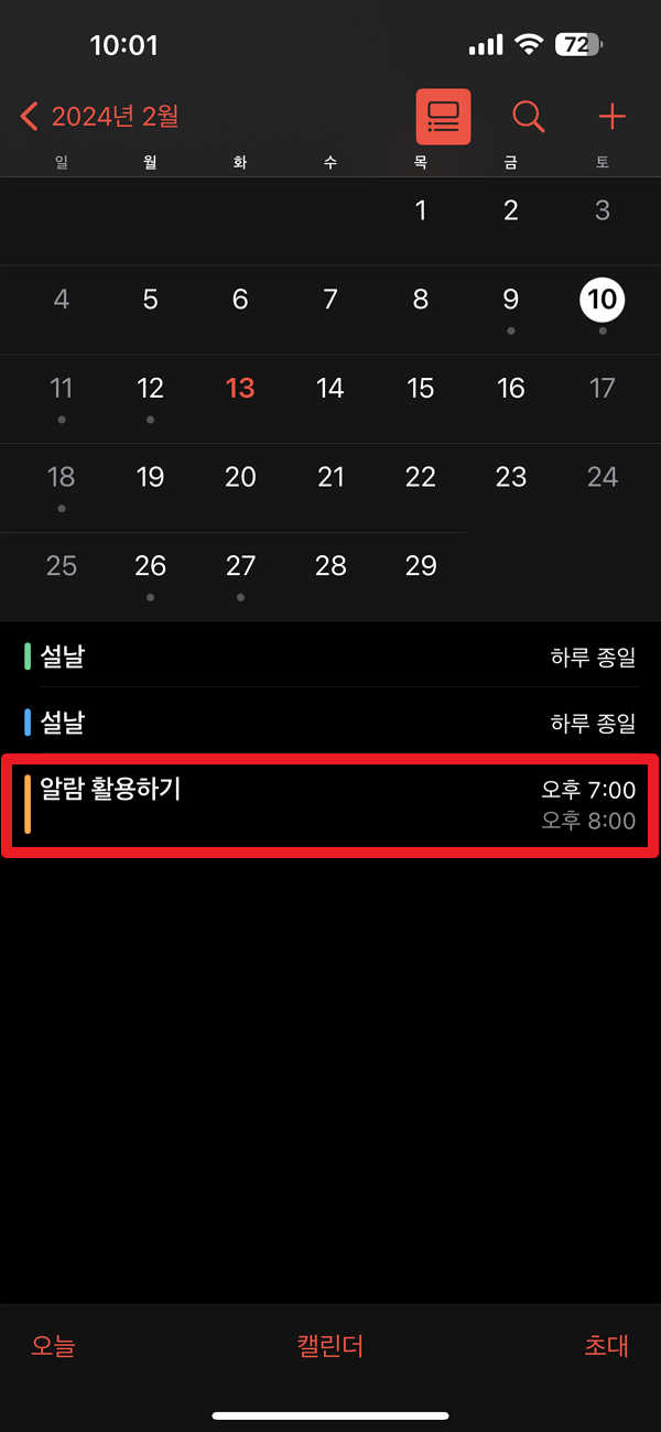 아이폰 기본 달력 위젯 알림 활용하기