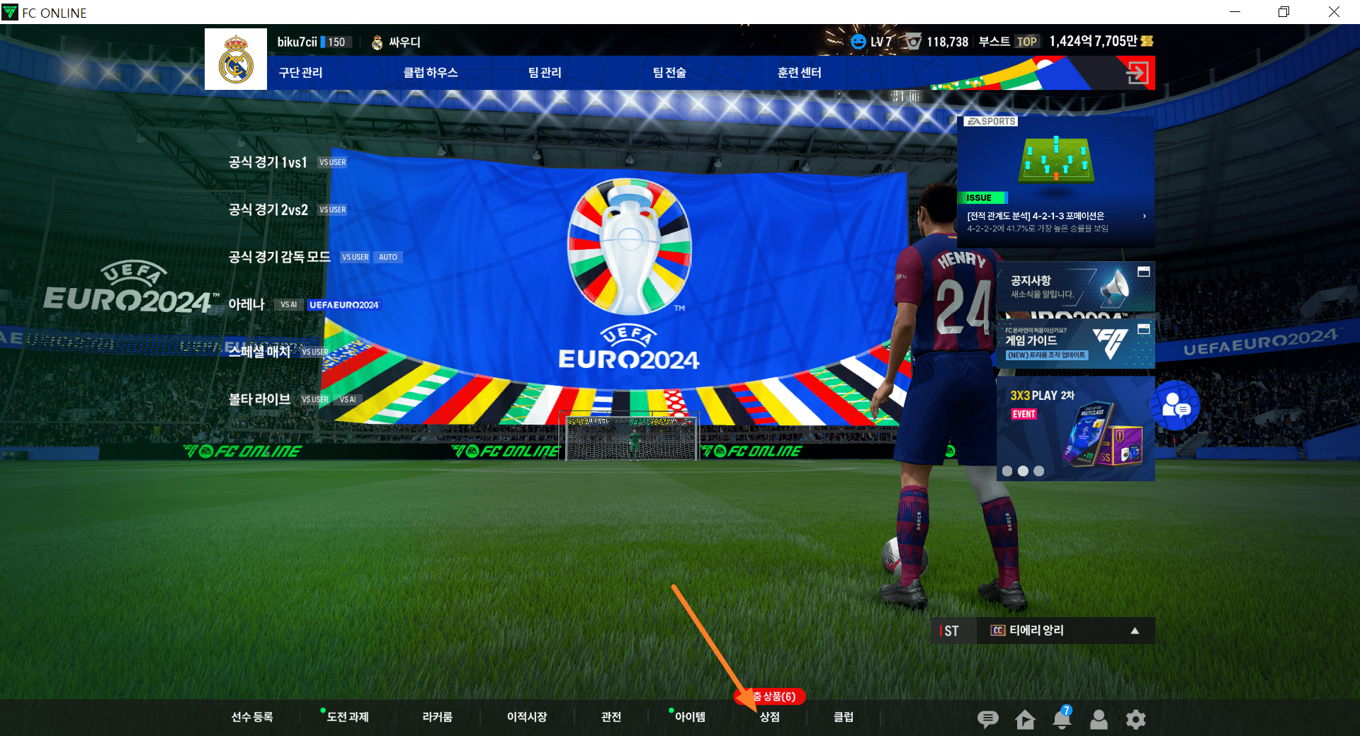 대표팀 로고는 변경 완료하였습니다. 이번엔 클럽팀 로고를 변경해 보려고 합니다. 클럽팀 로고를 변경하시려면 상점 메뉴로 들어가 주세요.