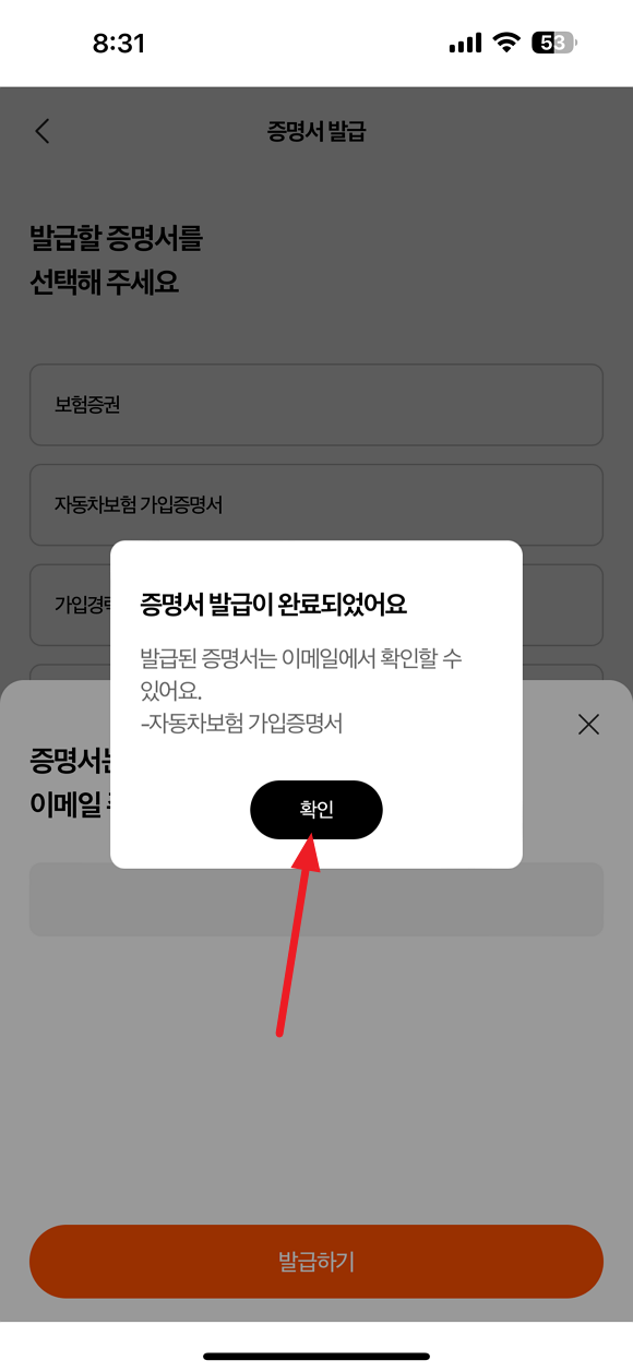 그럼, 아래 이미지와 같이 증명서 발급이 완료되었다는 알람이 표시됩니다.