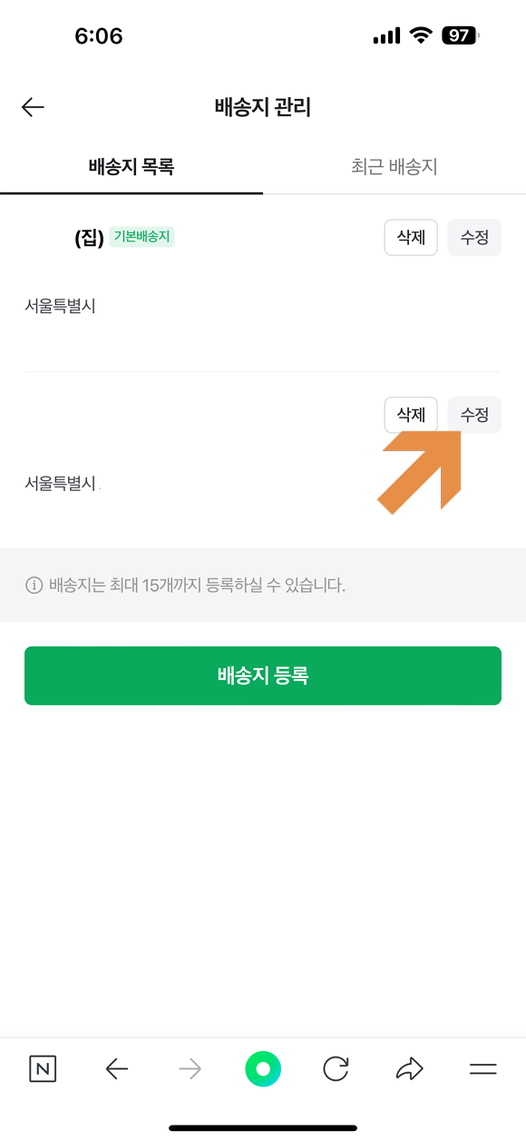 모바일 환경 네이버 기본 배송지 변경하는 방법
