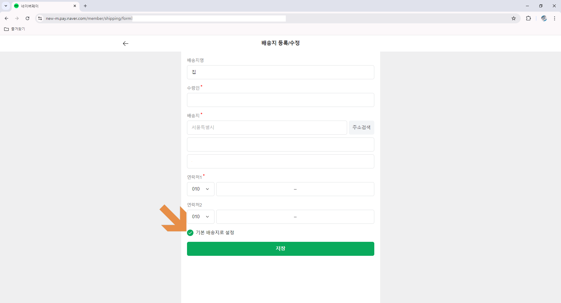 모바일 환경 네이버 기본 배송지 변경하는 방법