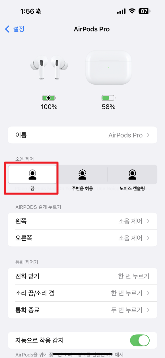 에어팟 프로 위이잉 지지직 소리 문제로 인해 에어팟 소음 제어 꺼버리기